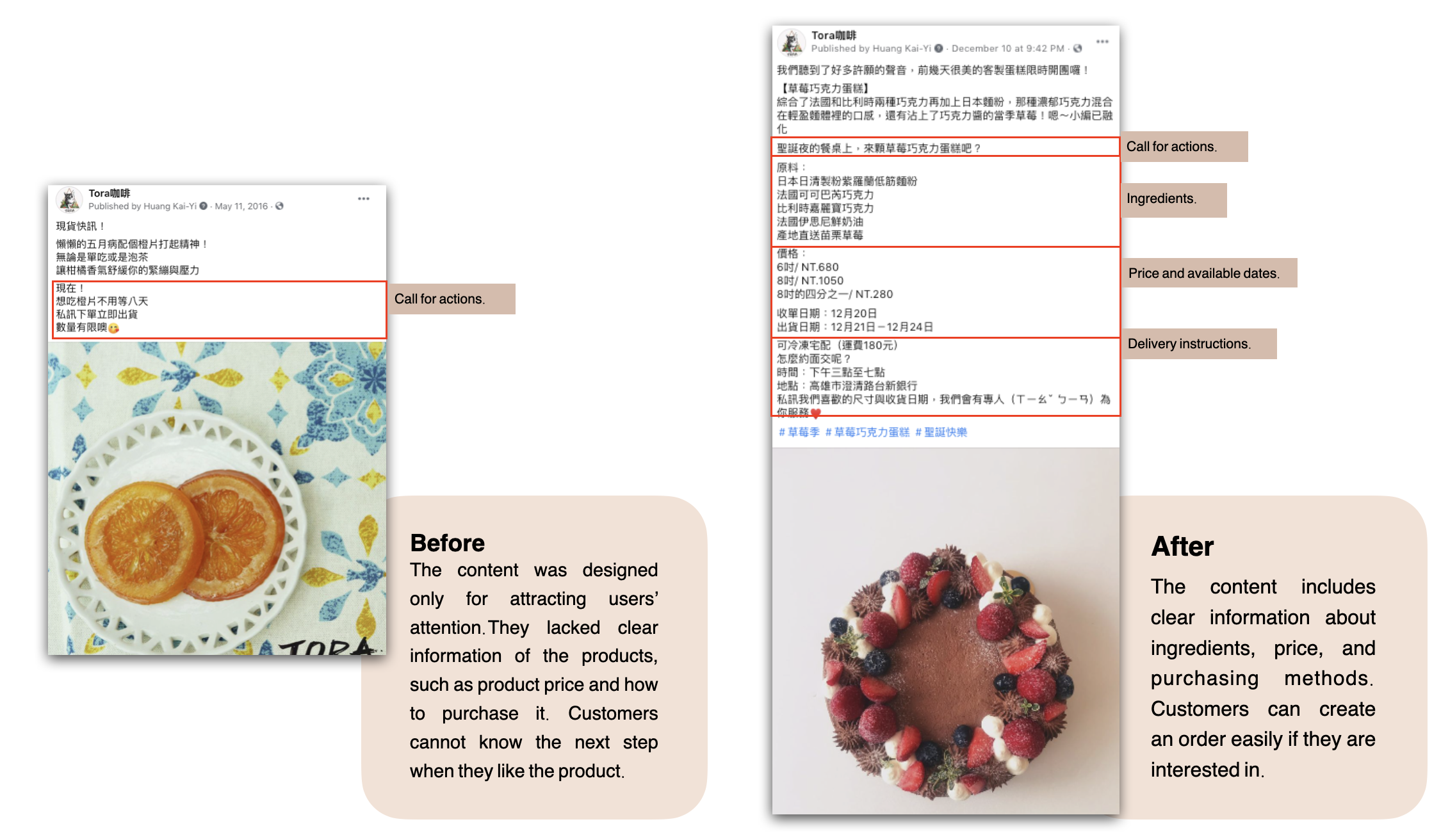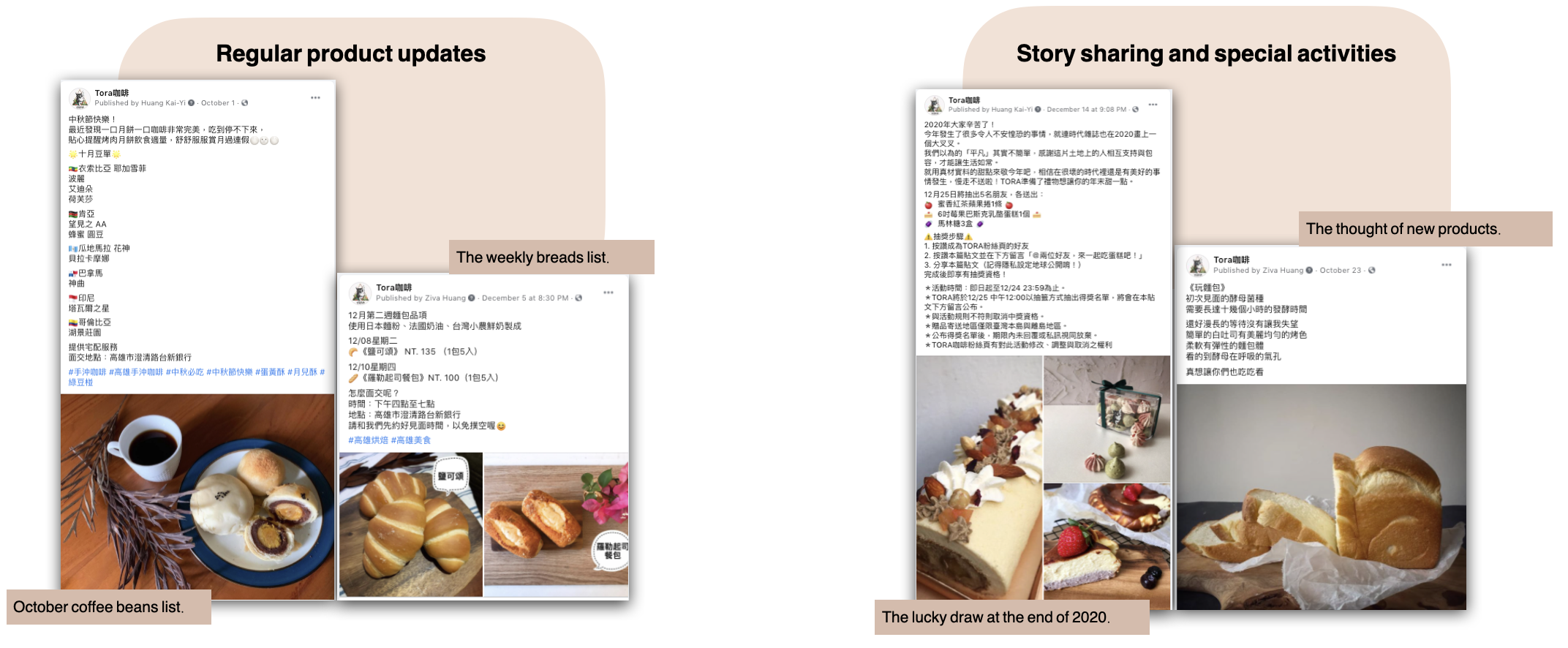 Schedule to introduce products regularly to keep clients engaged. For example, we updated the bakery dates every week and renewed the coffee bean list monthly. Additionally, we shared product stories and host activities to not only increase interaction with the followers, but also reach new potential consumers.